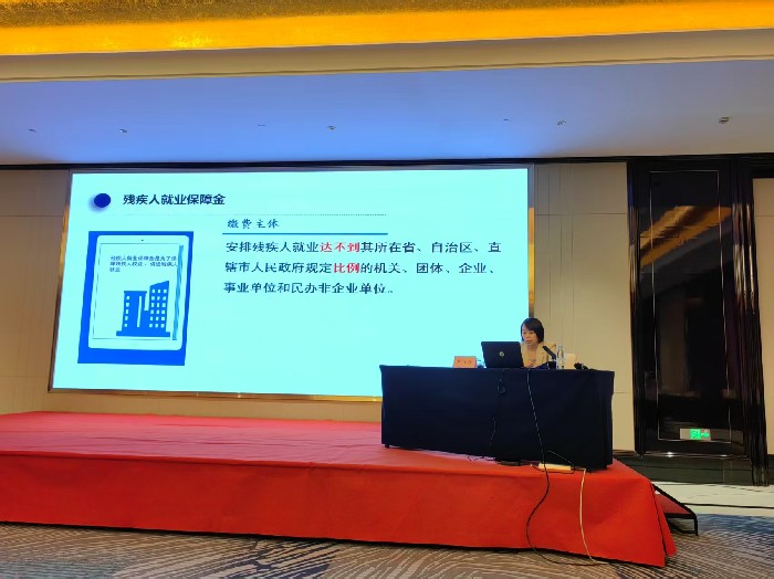 在政策宣讲环节,市残疾人就业服务中心业务骨干叶明围绕残疾人就业相关政策法规进行了细致解读,详细介绍了按比例安排残疾人就业联网认证申报步骤和注意事项;市税务局非税收入科副科长严佳佳结合典型案例讲解了安置残疾人就业相关税费优惠政策、联网认证申报缴费阶段流程。