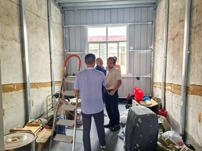 陈东在日常走访中了解到,徐魏魏、徐上兄弟俩位于镇上的门面房,每逢雨天屋顶就严重漏水,屋内墙面早已受潮发霉,既影响经营也存在安全隐患。由于兄弟二人身体残疾、家庭经济困难,这笔修缮费用和找人施工的难题,成了压在他们心头许久的“烦心事”。得知情况后,陈东决定用“礼让为先、沟通为要、和谐为本”的“六尺巷工作法”,帮兄弟俩彻底解决这一难题。