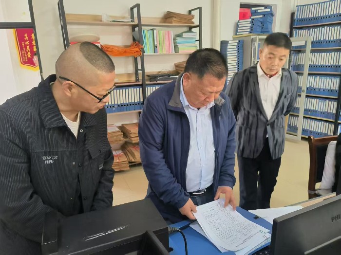 图为市残联党组成员、副理事长吴乐平在宿松县爱邻社会工作服务中心查看资料