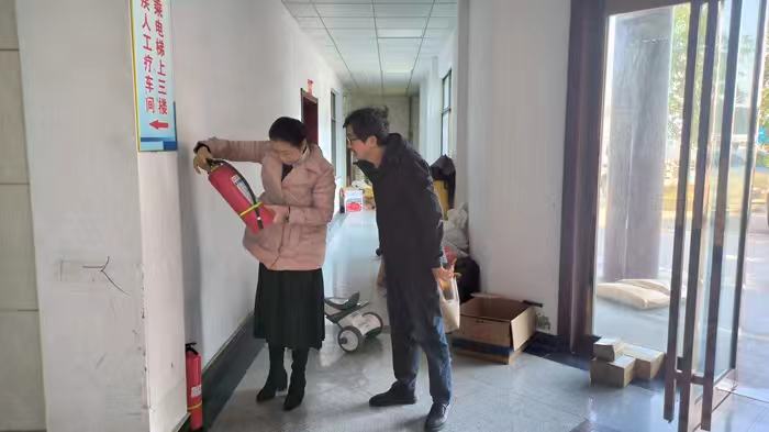 图为市残联理事长余月红查看消防器材