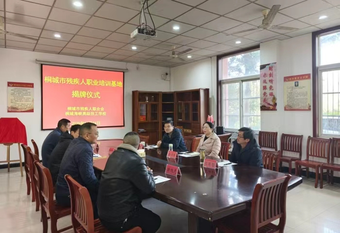 11月24日上午,在桐城海峡高级技工学校,桐城市残联与桐城海峡高级技工学校负责人共同为桐城市残疾人职业培训基地揭牌,此举标志着桐城首个残疾人职业培训基地正式投入运营,为当地残疾人群体职业技能提升与就业创业开启了崭新篇章。