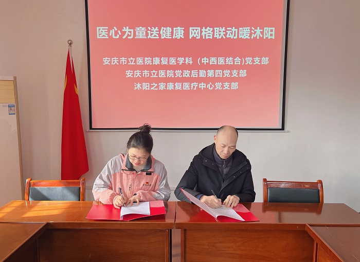 为深入落实国家优质医疗资源下沉政策,以党建引领精准对接残疾儿童康复需求,11月27 日上午,安庆市立医院康复医学科(中西医结合)党支部、党政后勤第四党支部赴沐阳之家开展“医心为童送健康 网格联动暖沐阳”主题党建共建签约活动。