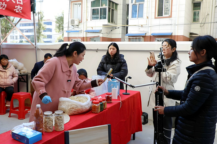 “这是由我自己种的蔬菜做成的咸菜,有腌萝卜、辣椒酱、豆腐乳等等,欢迎大家品尝。”来自温泉镇的残疾人创业储大姐对着镜头热情介绍,身体虽有不便,但介绍起产品却条理清晰。活动现场,直播间内订单不断,主播“大别山王姐”耐心引导观众下单,同时细致讲解每款农产品的特点和残疾人创业者的故事,让消费者在购买的同时更添一份温情。