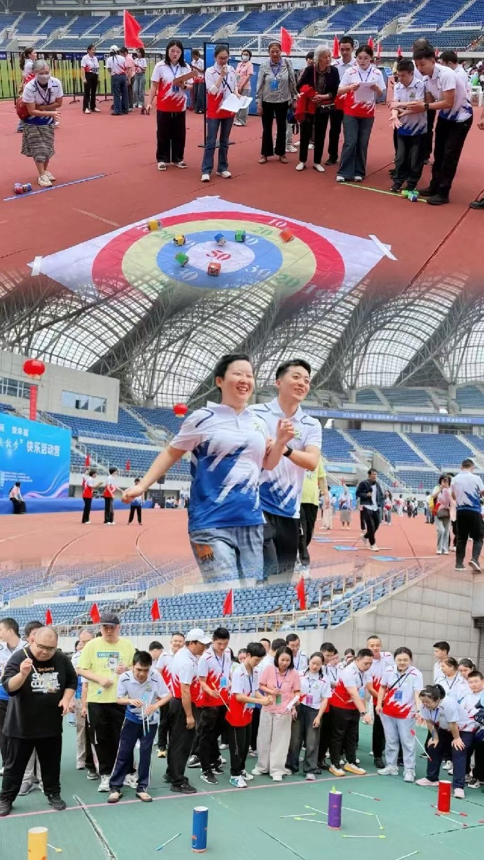 活动现场,多家爱心单位组成的志愿服务队分别与运动代表队一一结对,与心智障碍人士亲密交流,做好引领带队等服务等工作,加油助威声响彻市体育馆上空。在百米接力赛、飞盘投掷、投壶、捶丸、沙包投掷、“公鸡下蛋”等趣味运动项目上,队员们积极参与,配合默契,展现了乐观向上,自立自强的精神风貌。