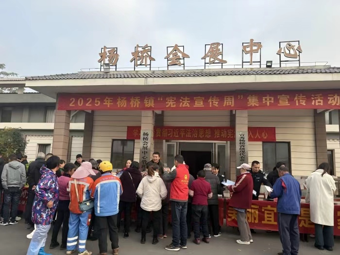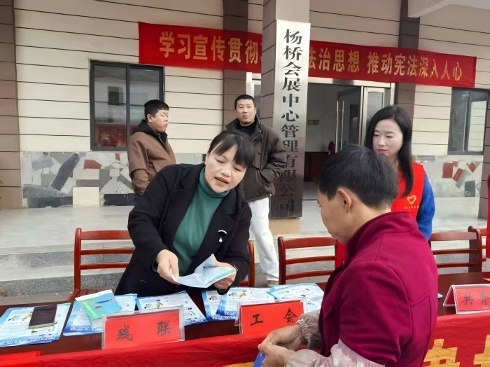 12月2日上午,在第十二个国家宪法日来临之际,安庆市宜秀区杨桥镇在镇会展中心开展“宪法宣传周”集中宣传活动,杨桥司法所、杨桥派出所、残联、民政相关部门参加。